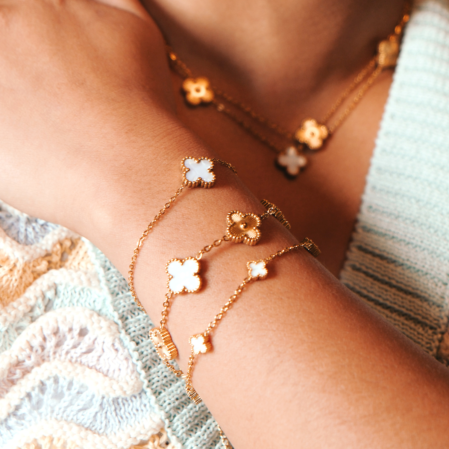 Legacy Golden Bracelet - Multi Clover - Gold and White mix