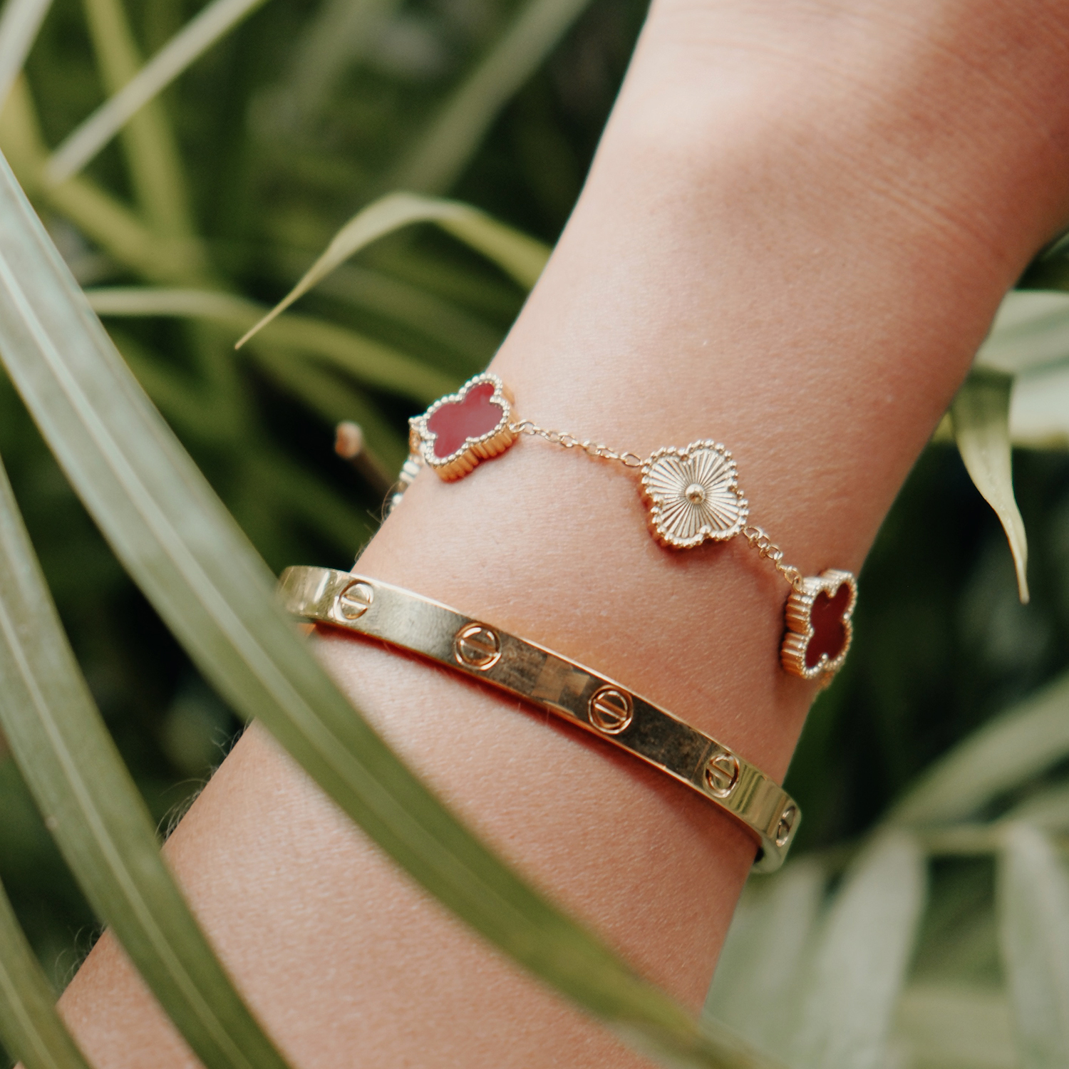 Legacy Golden Bracelet - Multi Clover - Gold and Burgundy mix